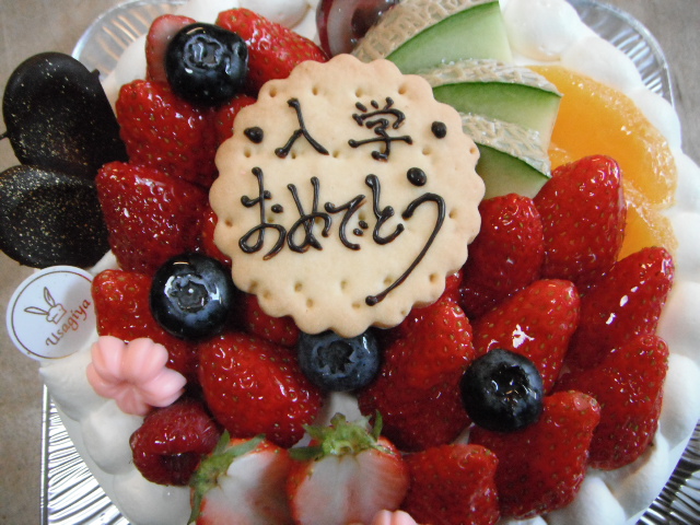 次男の入学のお祝いに友人のA様からいただきました\(^o^)/ホールのケーキにテンションUP☆