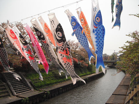ねむり家の横を流れるいたち川にて、こいのぼりが元気に泳いでいますよ~!