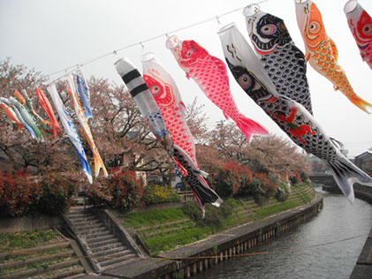 恒例になりました、いたち川のこいのぼりが気持ちよく泳いでいます~♪