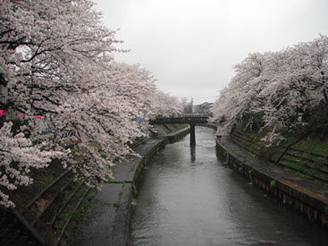 ねむり家の横を流れるいたち川。川沿いの桜が満開になりました(*^_^*)