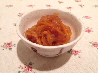 先日ご紹介させていただいた、柚子アラカルト。その中のひとつ、砂糖じょうゆに漬けておいたものを食べてみました。