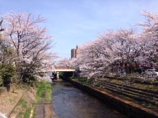 いたち川べり、桜満開です