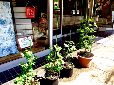 残暑は続いていますが、朝夕はめっきり涼しくなってきました。綿もすくすく成長し、可憐な花でお客さまをお出迎えしています。