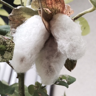 秋の訪れを告げるかのように、綿の実がはじけました。いよいよ国産綿の実りの季節です。