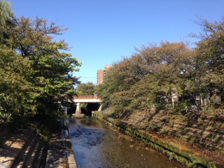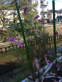 いたち川沿いの桜並木は少しずつ色づき始め、コスモスの花も揺れるようになりました。