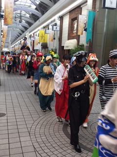 富山市中心部では、高等専門学校生による仮装行列が行われ、町行く人々の目を釘付けにしていました。通りのタイルも、クモの巣模様に見えてしまいます。