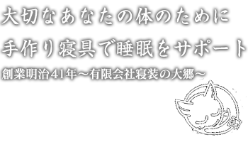 有限会社寝装の大郷の前身、大郷綿行は明治41年(1908年)に、現社長の曾祖父である大郷金次郎によって創業。金次郎氏の実家は、江戸時代、材木屋や質屋を営んでいた商家でした。