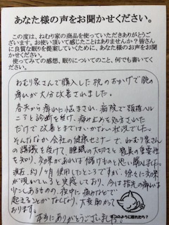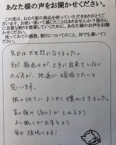 これからもお客様の生のお声をご紹介させていただき、おひとりでも多くの方の眠りの悩みをお取りできますよう、努めてまいります。(ねむり家スタッフ一同)
