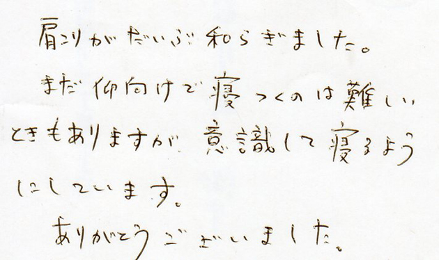 肩こりがだいぶ和らぎました。( 痛みと寝姿勢 )